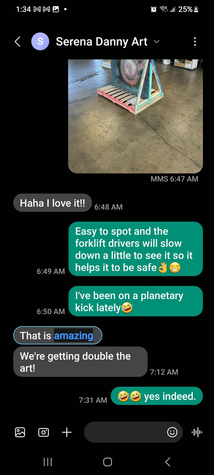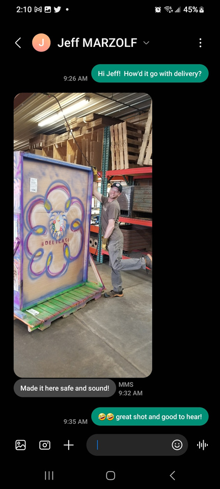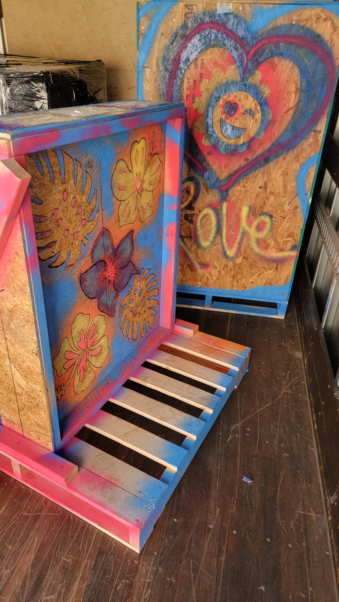 After a few years, I became a mom (YAY!) and worked various retail jobs, managing Inside and Outside Garden at Home Depot and Lowes. I drove a forklift every day for ten years, which taught me a lot about pallets and crates. I observed how doors and windows were shipped on an "A Frame" style skid pallet and how careless forklift drivers could damage merchandise or even drop full pallets. That's why I paint my crates with attention-grabbing colors and designs - to slow them down just enough so your items are safe.
